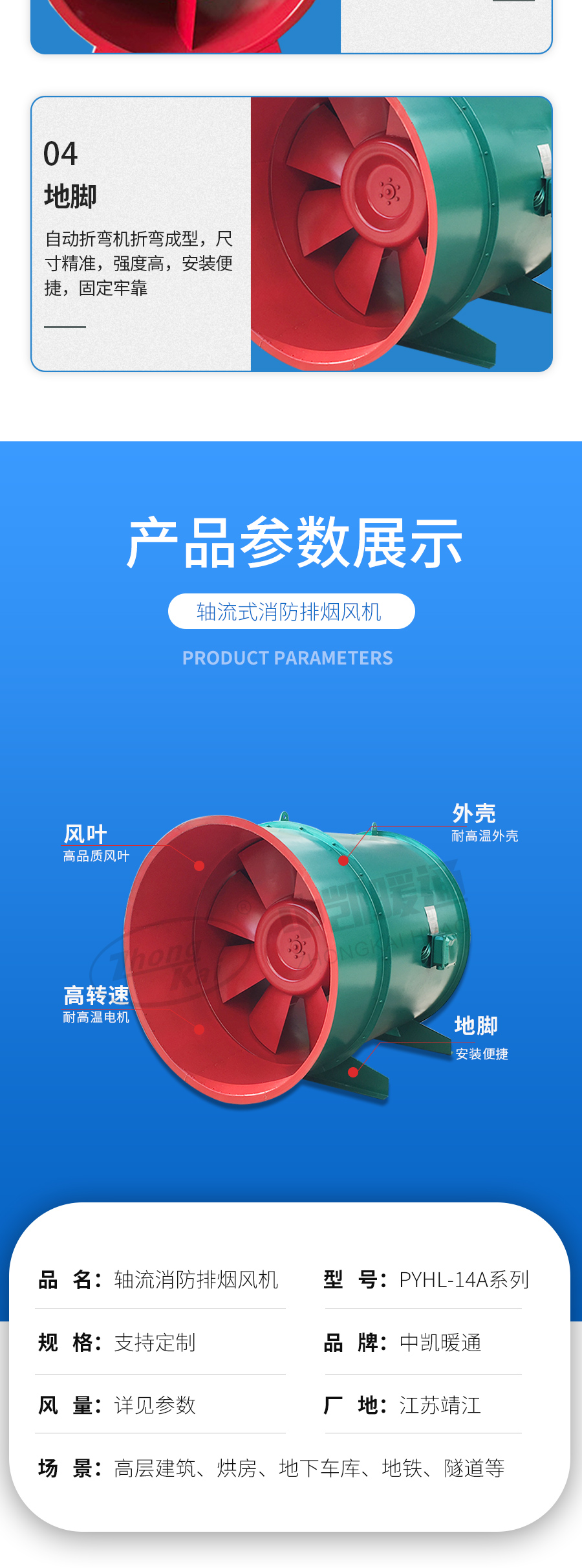PYHL軸流式消防排煙風(fēng)機(jī)是介于軸流式和離心式之間的一種新型風(fēng)機(jī),它具有離心式通風(fēng)機(jī)高的壓力,軸流風(fēng)機(jī)大的流量,效率高、節(jié)能、低噪聲,安裝方便等特點(diǎn)。能在280℃左右環(huán)鏡溫度中正常運(yùn)轉(zhuǎn)1小時(shí),既能作通風(fēng)換氣,又能起高溫排煙等雙重作用,適用于地下隧道、地下商場(chǎng)、地下倉(cāng)庫(kù)等消防配套設(shè)備,深受設(shè)計(jì)院和用戶的選用。