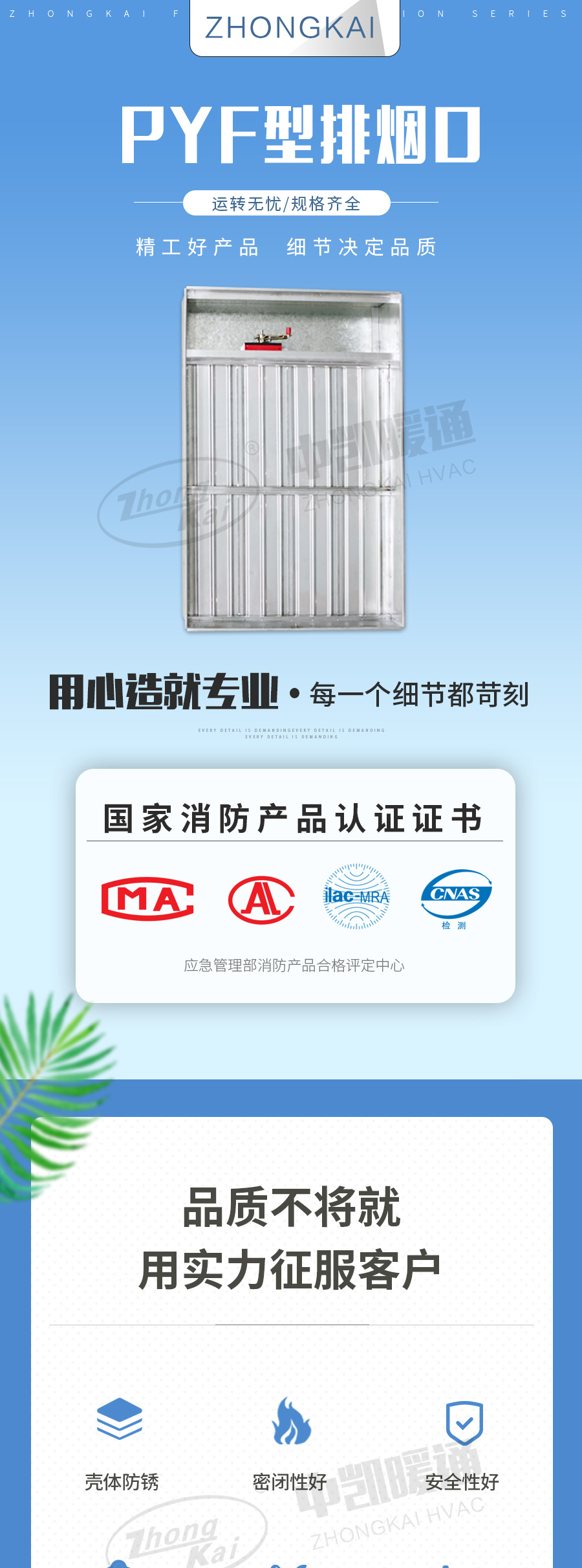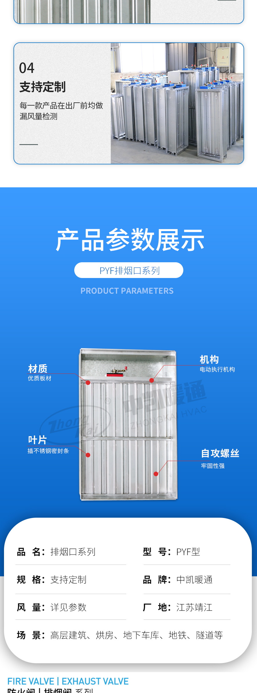 PYF排煙口閥門平時常閉; Dc24V電動開啟,手動開啟,輸出開啟信號; 手動復(fù)位。