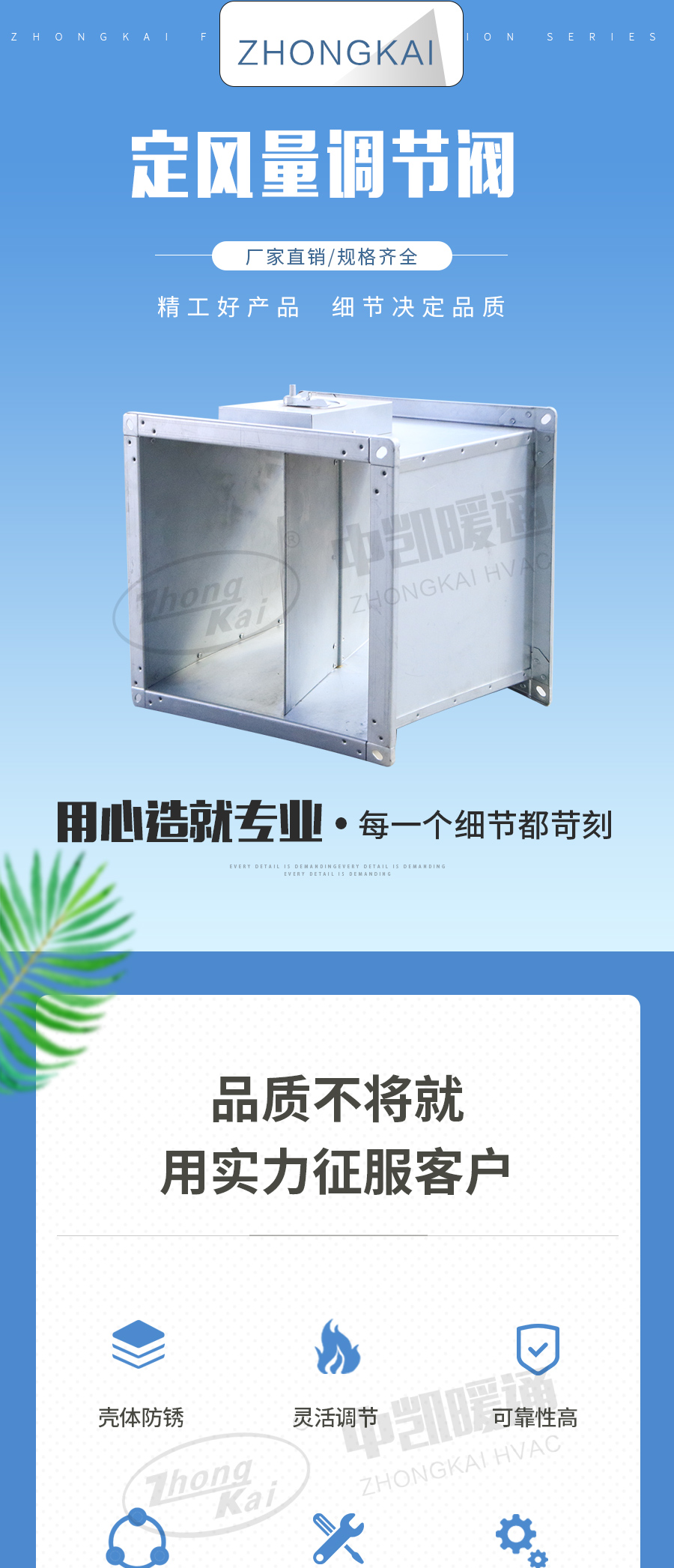 定風量閥,是一種機械式自力裝置,適用于需要定風量的通風空調系統中。定風量閥風量控制不需要外加動力,它依靠風管內氣流力來定位控制閥門的位置,從而在整個壓力差范圍內將氣流保持在預先設定的流量上。